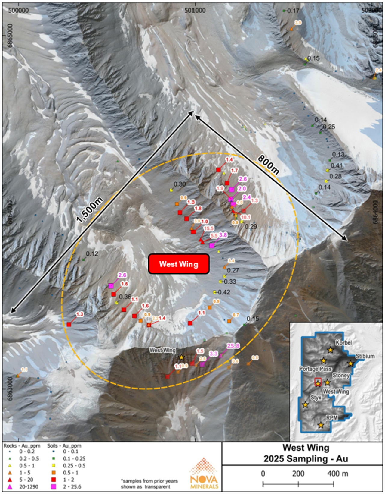 - These results build on earlier surface reconnaissance at West Wing, which returned rock samples of up to 25.8 g/t Au (ASX Announcement: 26 February 2024).